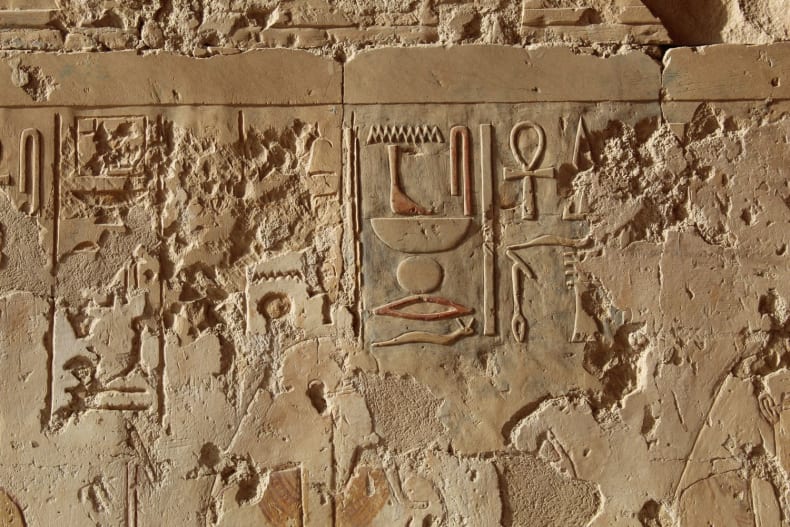Left: The feminine endings referring to Hatshepsut have been chiseled out.